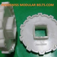 The Conveyer Belts are available in diverse specifications, designs and shapes. They are high in performance and extremely efficient. ISMB-50 Group of Modular Belts are heavy duty & impact resistant Conveyor Belts. They are mostly preferred for medium & heavy weight material movement. Such Belts are extensively used in rugged and continuous working namely food, beverage, meat, FMCG, cartons, automobile and light engineering parts. We believe in quick delivery of the order. SMB-50 VT (For Inclined lifts) : ISMB-50 VT are the vertical cleats used for the lifting the materials from horizontal planes to the Vertical heights or upper planes. They are used along with standard ISMB 50 modules. These are available in heights of 25mm, 50mm, 75mm, & 100mm. MSW-30,80,109 (MOVING SIDE WALLS / GUARD) : Moving side walls fitted on the modular belts , travel along with belts thus avoiding spillage. Chance of small Products getting struck up between the fixed type side walls & moving belt are avoided with Moving side walls. CD-50 (CLAMP DOWN UNIT) : Clamp down units are fixed below the ISMB-50 modular belts. It prevent the belt to buckle out during Up turns & In Blanchers etc for wide belts. It also holds down the belt during return for Inclined belts for wide sizes . Technical Specifications Pitch 50 mm. / 2 inch Thickness 16 mm Type Side Wall Gear driven.& Side drift free design. Pin Dia 8 mm Nylon / Acetal.(High Tensile wear resistant) Widths Available 150 mm to 2500 mm (Exact width available on request) Material Low friction PP& CP (+1 to+105 deg C) Max Tensile Load : 991 kg. Special Engineered polymers ( On Request) Impact resistance, UV (Ultravoilet) sun ray protection , Antistatic material. Food grade material , Anti Bacterial , High Temperature. HDPE ( - 50 to + 66 deg C) Max Tensile Load : 750 kg Combination Belts Low friction Polyacetal (-25 to + 91 degC)Max Tensile Load : 1400kg Various combinations with different variants of belt pattern with vertical cleats of Different heights , combined with moving side walls etc are available. Drive Gears for ISBM-50 Description Teeth Outer Diameter Bore Hub Width Product P2-T8 8 T 130 mm 40 mm square 46 mm Std CNC Moulded P2-T8 8 T 130 mm 60 mm square 33 mm Std CNC Moulded P2-T10 10 T 162 mm 40 mm square 33 mm Std CNC Moulded P2-T10 10 T 162 mm 60 mm square 33 mm Std CNC Moulded P2-T12 12 T 195 mm 40 mm square 30 mm Machined On Request only.